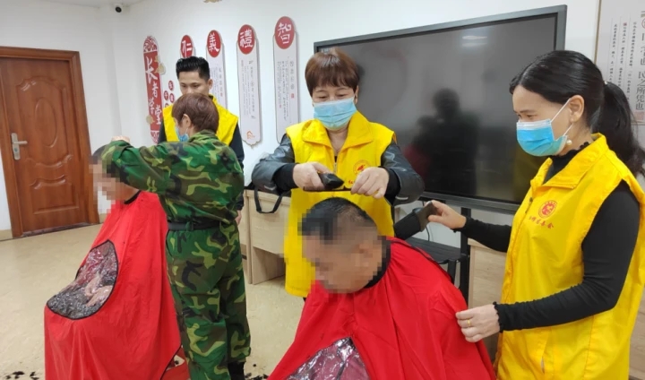 志愿者為康園中心殘疾朋友們理發。