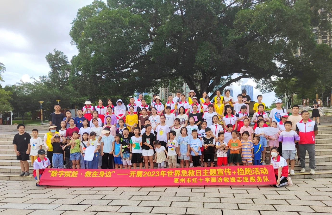 惠州日報訊 (記者馬海菊)8月27日下午,96組親子志愿者相聚惠城區東江公園廣場,惠州市紅十字賑濟救援志愿服務隊在此舉辦“應急救護+撿跑”暑假志愿活動總結分享暨2023年“世界急救日”宣傳活動。