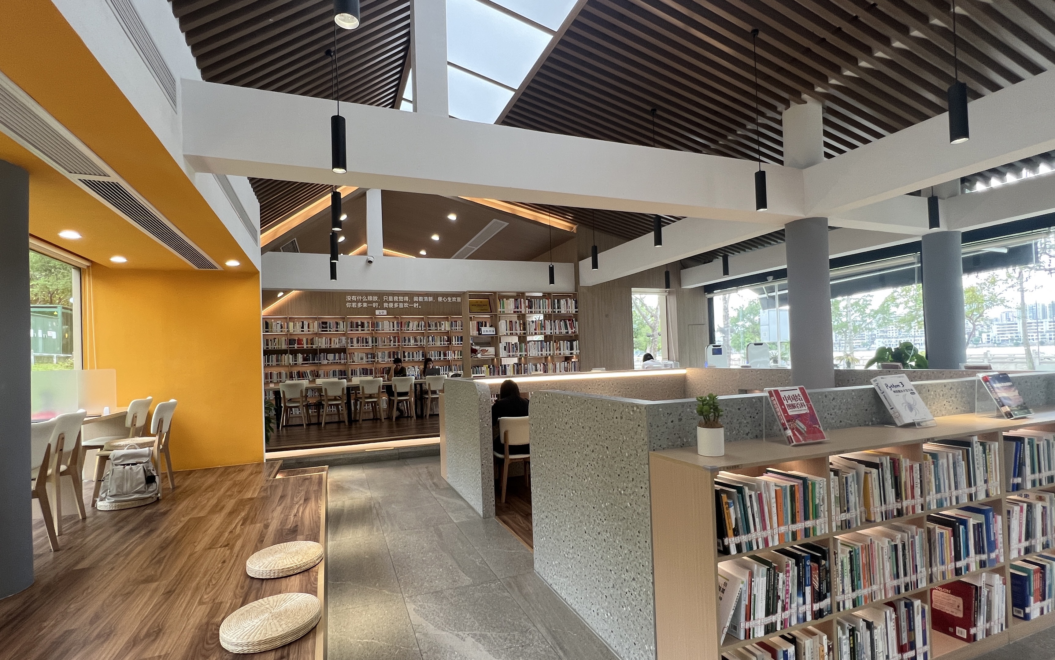 移步“明月頌”,又是另一番景致,這里江水映月,視野開闊,竹影婆娑,雅致宜人。書房通透明亮,溫馨浪漫。書房面積140平方米,藏書6526冊,設有童心亭、夢之森自習區、T島陳列區、摘星閣閱覽室、云夢之澤閱覽區、森之鏡閱覽室和自助服務區。
