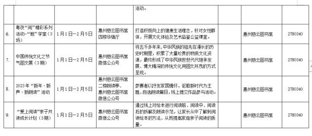 為廣泛開展快樂健身行動,增強全民健身意識,同時也豐富市民的節日業余生活。春節期間,惠州奧林匹克體育場、惠州體育館將繼續免費開放。主要開放項目有足球、田徑、網球、籃球、乒乓球、太極拳、廣場舞、輪滑、健身氣功等。