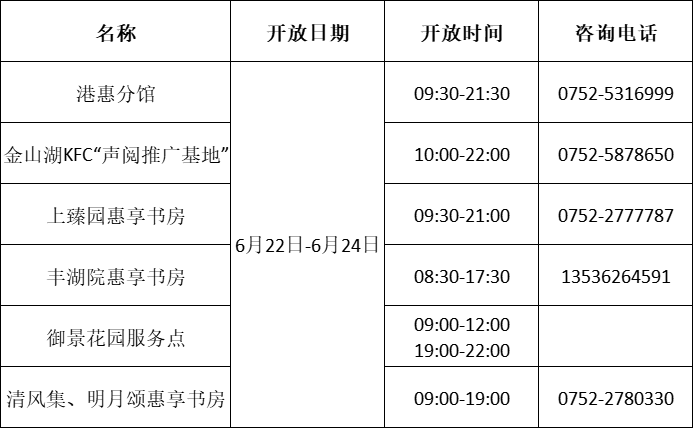 惠州市圖書館(惠州市少兒圖書館)及分館服務(wù)點端午節(jié)期間具體開放通知如下: