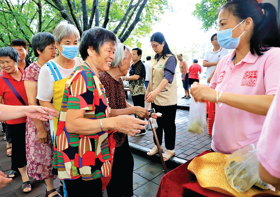 志愿者派粽子。惠州日報記者李燕文 通訊員徐俊杰 攝