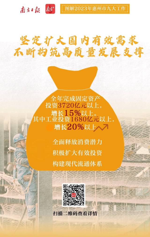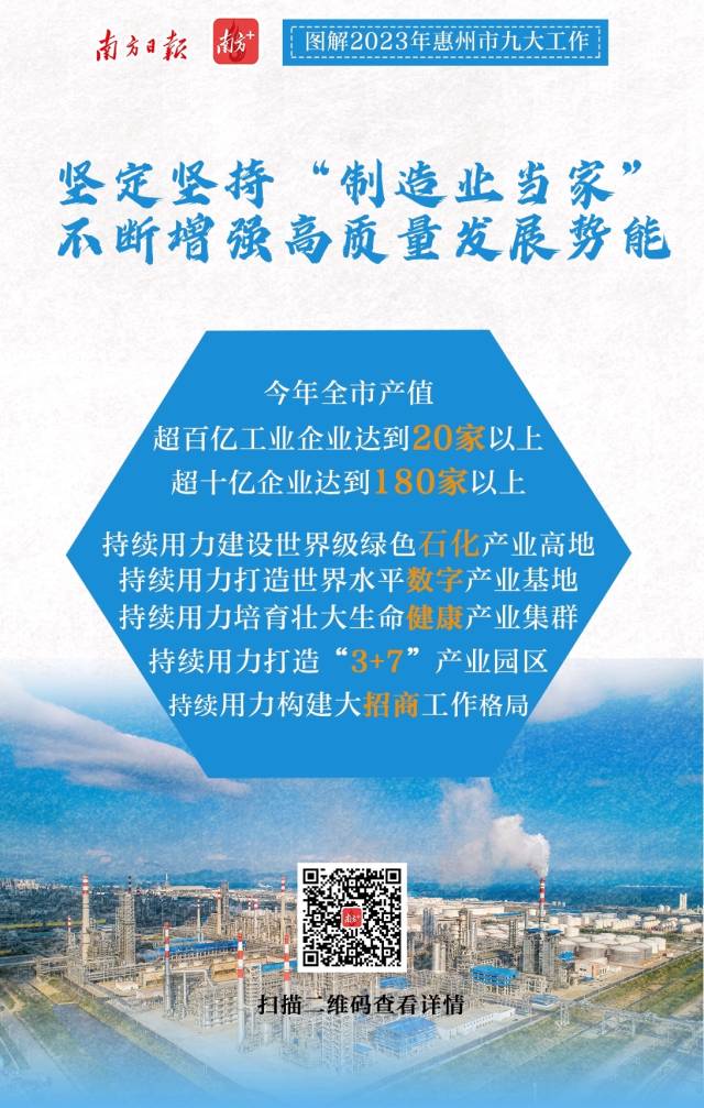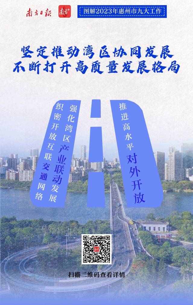 2月7日上午,惠州市第十三屆人民代表大會第三次會議開幕。會上,惠州市委副書記、市長溫金榮作市政府工作報告。惠州市政府工作報告提出,2023年重點聚焦九個方面重點工作,南方日報、南方+客戶端推出9張海報帶你速覽。