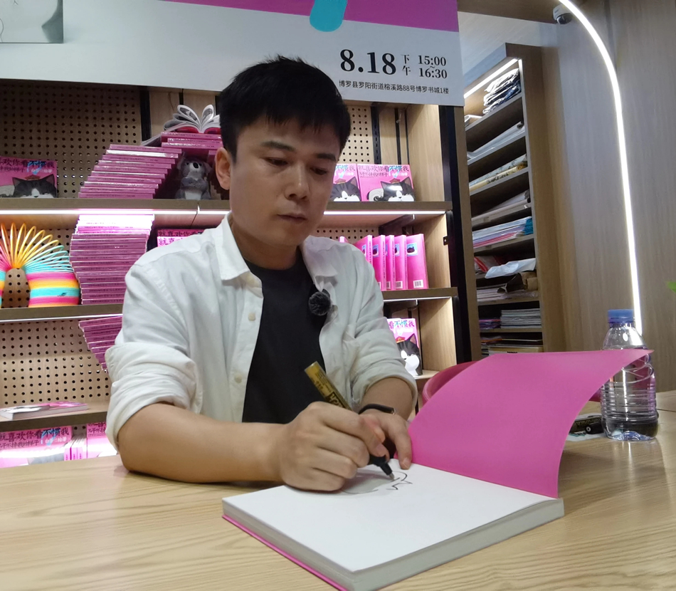 白茶給讀者簽名留念。惠州日報記者朱麗婷 攝