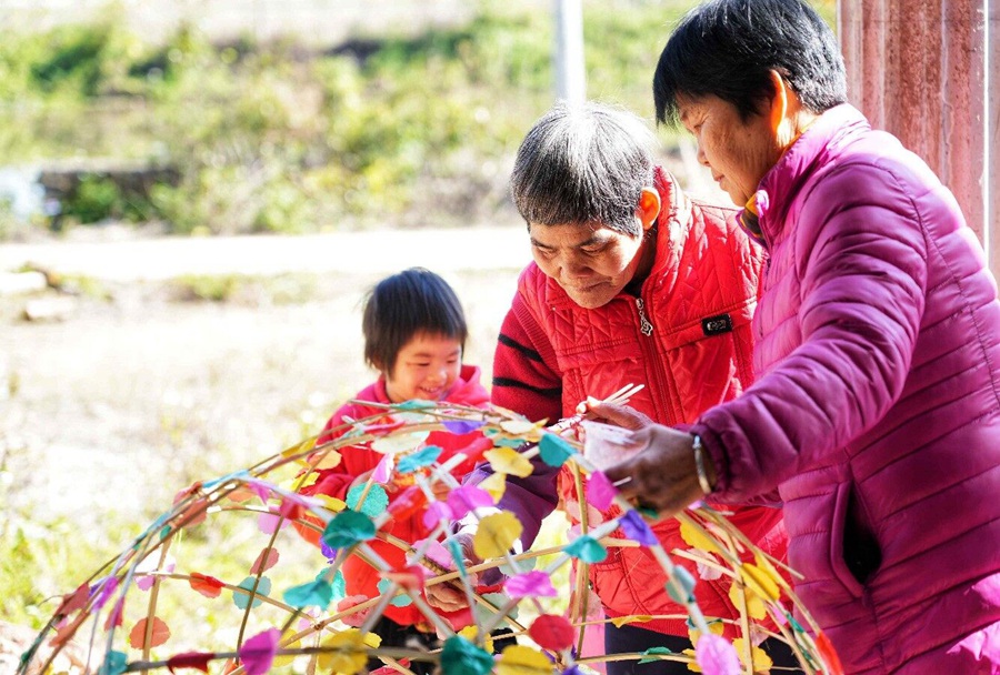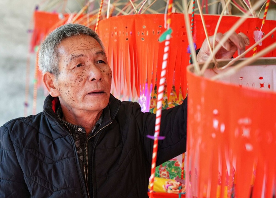 何廖福還告訴記者,他七歲開始跟爺爺學(xué)做花燈,虎頭花燈是以竹、紙為主要材料,它的制作過程主要包括扎架、剪紙、卷燈帶、裱糊、做燈斗與鳳雞等一個個組合成以三個大小不一的圓球體為主的虎頭花燈。