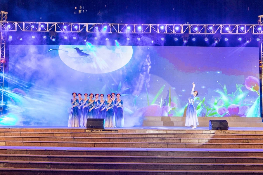 原創歌曲《不能錯過的美麗》掀起了晚會高潮,這是惠城文藝工作者2023年創作的惠城迎賓曲,唱山水鵝城,贊美詩意西湖,推介大美惠州;惠城區民間文藝家協會的會員帶來的器樂曲《彩云追月》,舒緩柔美的音樂勾勒出月色,以月之圓兆人之團圓,描繪花好月圓的良辰美景;街舞《國風》將活力的街舞與國風元素相融合,輕快的舞步與節奏的完美結合充分展現著當代年輕人的生機與活力,歌曲《咱村變化大》剛健樸實,具有嶺南特色,舒唱著惠城鄉村振興帶來的新面貌新風尚,為群眾奉獻一場視覺盛宴。