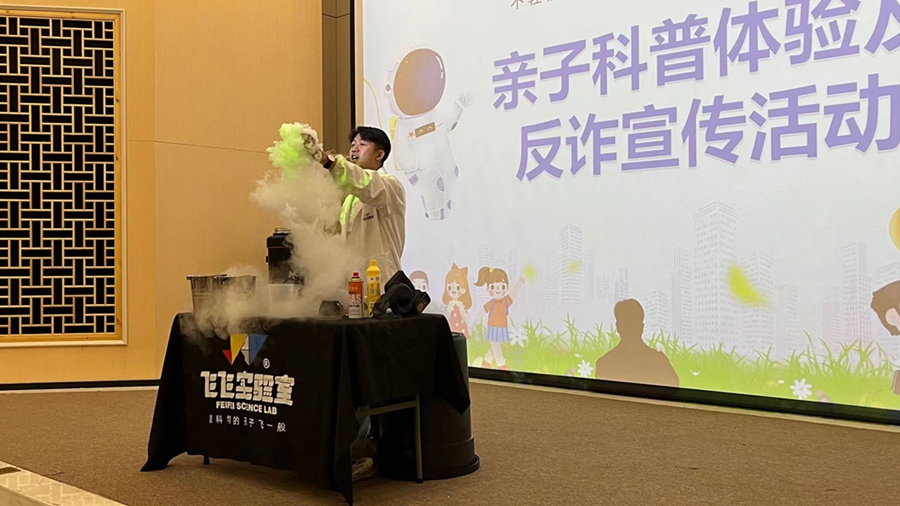 啟動儀式結束后,還組織困境家庭代表開展了科學奇幻秀、科學實驗課等親子科普體驗及反詐宣傳活動,讓家長、孩子們既學習科學知識,又提高了反詐反家暴防性侵意識,增進了親子間的情感交流。