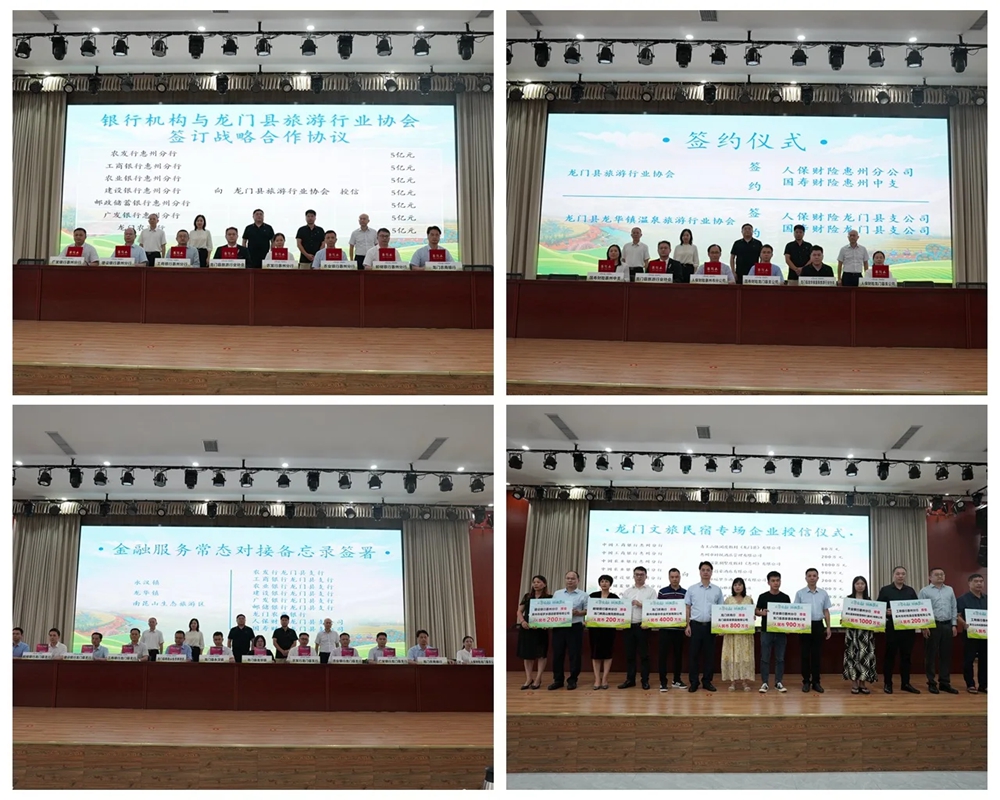 活動中,通過前期的摸底調查和對接,5家銀行向本地文旅企業代表現場授信7400萬元,9家金融機構與龍門縣旅游行業協會簽署合作協議并給予授信金額共35億元,2家保險公司龍門支公司與龍華鎮溫泉旅游行業協會簽署合作協議;同時,還有9家金融機構龍門縣分支機構與龍門縣永漢鎮等3個重點鄉鎮簽署了常態化金融服務備忘錄。