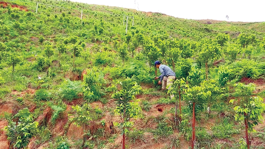 位于惠東白花鎮(zhèn)南龍村的一個小山包上,茂密的沉香樹林正蓬勃生長,樹干上的一個個空洞內(nèi),綠棋楠逐漸長成,淡雅的清香彌漫開來。