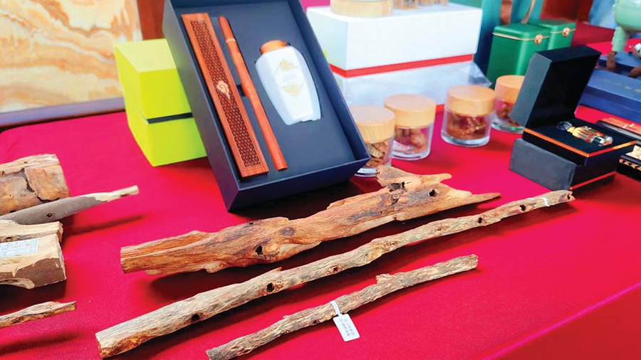 研討會上展出的天然綠棋楠及相關(guān)產(chǎn)品。
