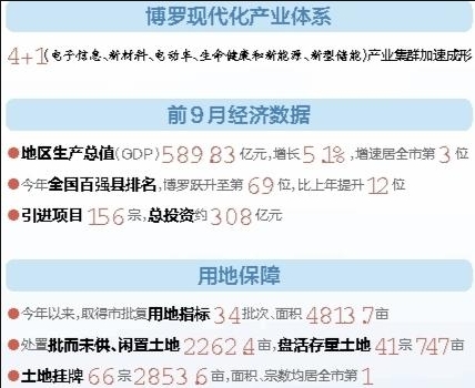 無論是產業發展,還是項目建設,或是平臺建設,要素支撐必不可少。在用地保障上,博羅出硬招、實招,打好用地保障“組合拳”。今年以來,取得市批復用地指標34批次、面積4813.7畝;處置批而未供、閑置土地2262.4畝,盤活存量土地41宗747畝;土地掛牌66宗2853.6畝,面積、宗數均居全市第一。強力保障資金需求。今年以來,獲得新增專項債券35.6億元,統籌財政資金支持制造業發展近10億元;新增貸款持續流向制造業,截至9月末,全縣制造業貸款余額147.7億元,增長23.9%。