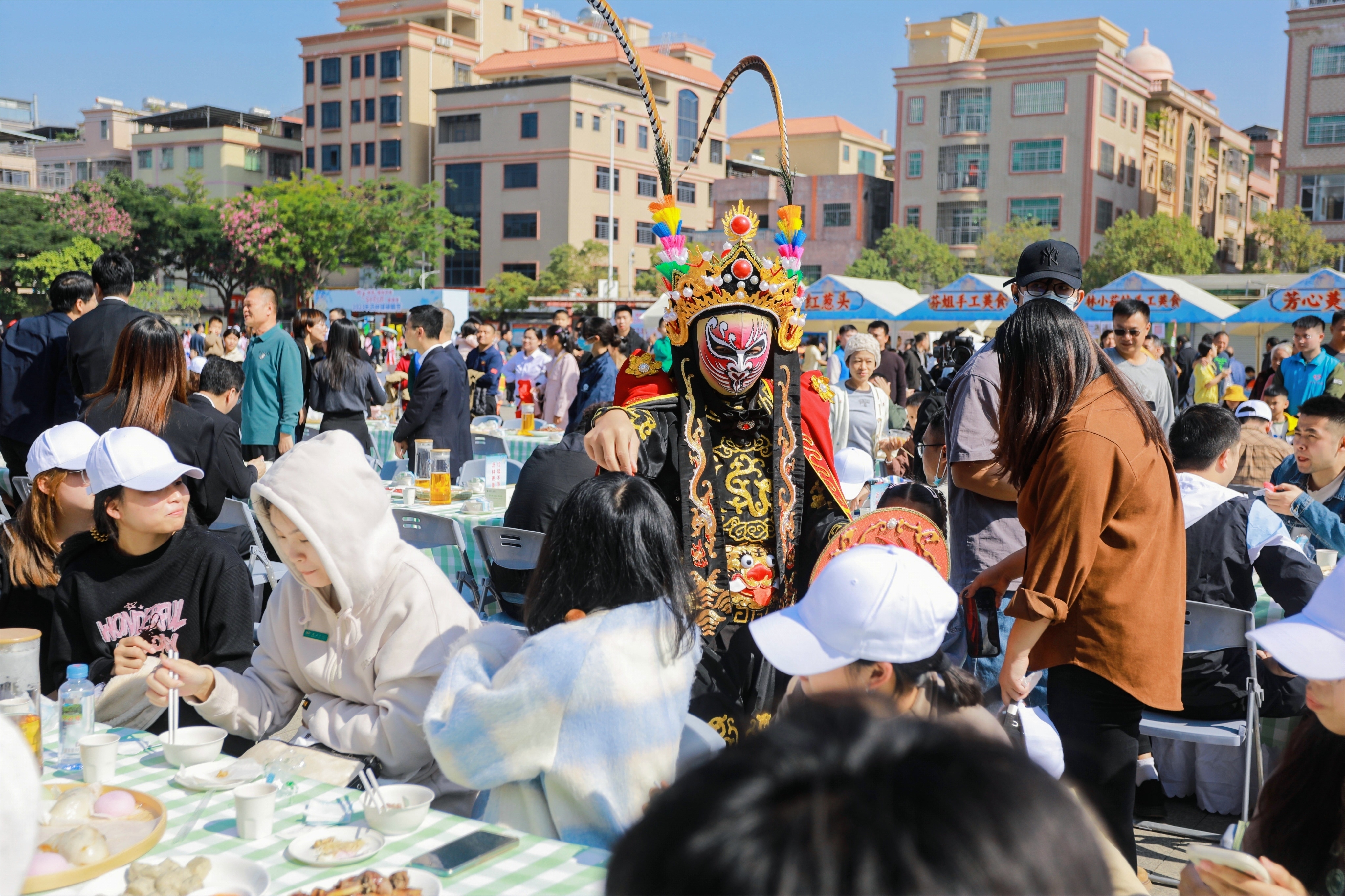 除了碌鵝美食交流賽,當天的另一特色就是長桌碌鵝宴,大家共享“舌尖上的美食”,共品瀝林碌鵝味覺盛宴。此外,活動現場還設置了瀝林本土特色農產品展示區、特色美食區以及套鵝游戲區,游客沉浸式體驗瀝林美食文化。“碌鵝很美味,套鵝游戲很好玩,還有很多好吃的,非常棒。”一邊品嘗美食一邊玩游戲的游客對此次碌鵝節豎起了大拇指。