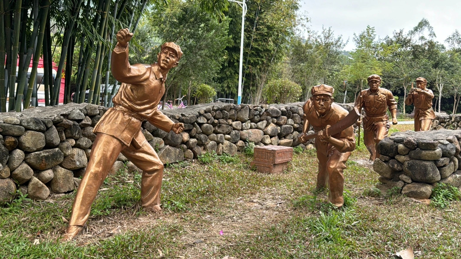 低冚伏擊戰(zhàn)戰(zhàn)士戰(zhàn)斗雕塑、低冚伏擊戰(zhàn)遺址紀(jì)念墻、軍旗廣場、勝利之門、聚和堂宗祠、婦女夜校遺址、大型革命主題浮雕……隨著一個個紅色遺址的開發(fā)利用,這個昔日的小山村一下子熱鬧起來,除了接待各級黨組織參觀學(xué)習(xí),還有不少游客慕名前來游玩,成為熱門打卡地。