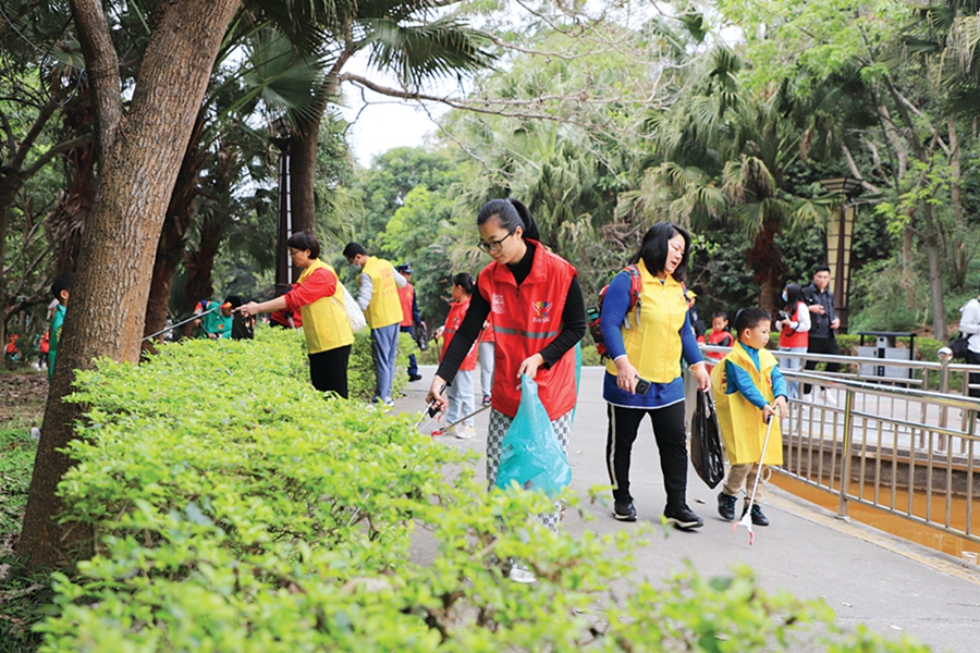 當天上午,博羅東山森林公園里,志愿者們撿跑的身影成為一道美麗的風景線。記者留意到,當天,參加活動的志愿者大多是家長帶著小朋友一起,通過大手拉小手,傳遞雷鋒精神和志愿服務理念。他們手持鉗子和垃圾袋等工具,沿著草坪、綠化帶仔細尋找、撿拾煙頭、紙袋、塑料瓶等垃圾。小志愿者們還比拼起撿垃圾的數量,在你追我趕的氛圍中,公園變得更加干凈美麗。