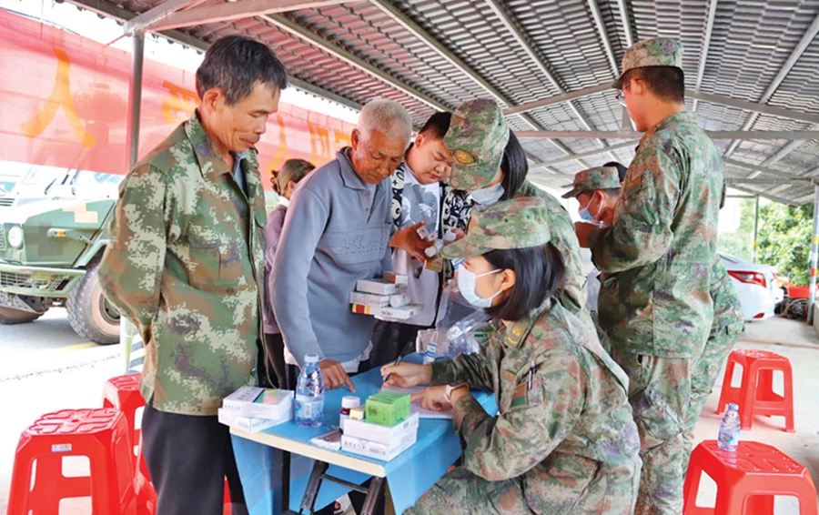 “阿叔,給你開了頭孢類的藥,千萬記得吃了藥不能喝酒!”曾因救人被各大媒體宣傳報道的“維和女兵”蒙琴早已忙得不可開交,她一邊為前來看病的村民測量血壓,一邊根據問診結果備齊藥品,然后細心叮囑患者用藥量及注意事項。