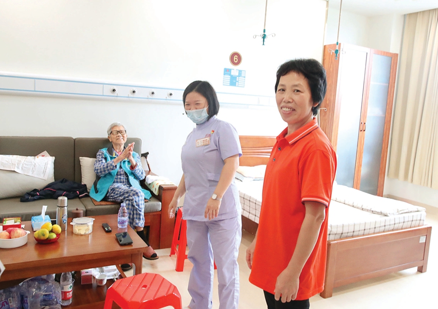 惠州一家養護院的護工與老人聊天。惠州日報記者鐘暢新 攝