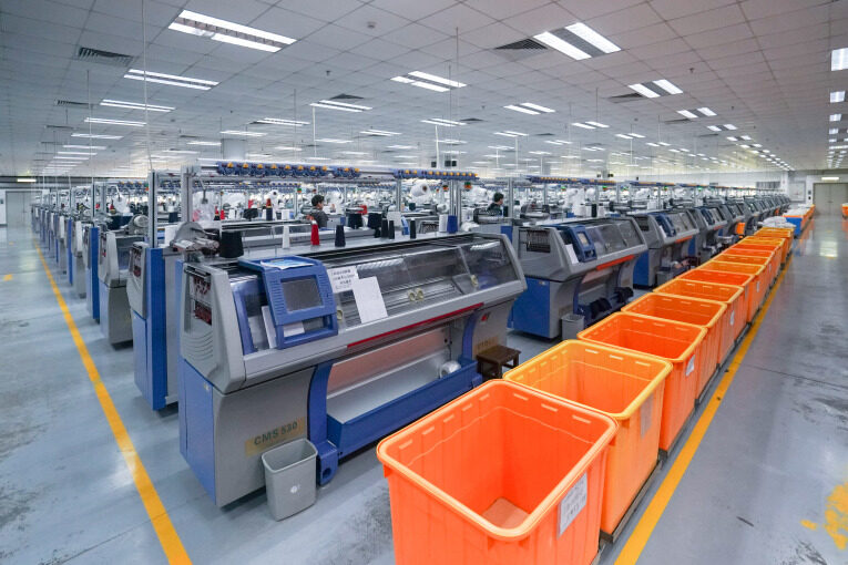 走進南旋集團生產車間,一排排全自動計算機橫織機不停編織,整個車間擁有全自動計算機橫織機超4000臺,一眼望去,蔚為壯觀。據介紹,在服裝生產這樣的傳統產業,南旋集團是最早一批實施工業智能化的企業,早在2005年,南旋集團就開始進行生產數字化探索。