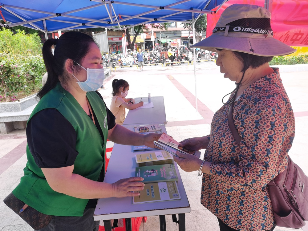 近期天氣悶熱且雨水較多,針對四周蚊蟲較為活躍的情況,活動現場,工作人員進行病媒生物防制消殺并向群眾派發除“四害”藥物。