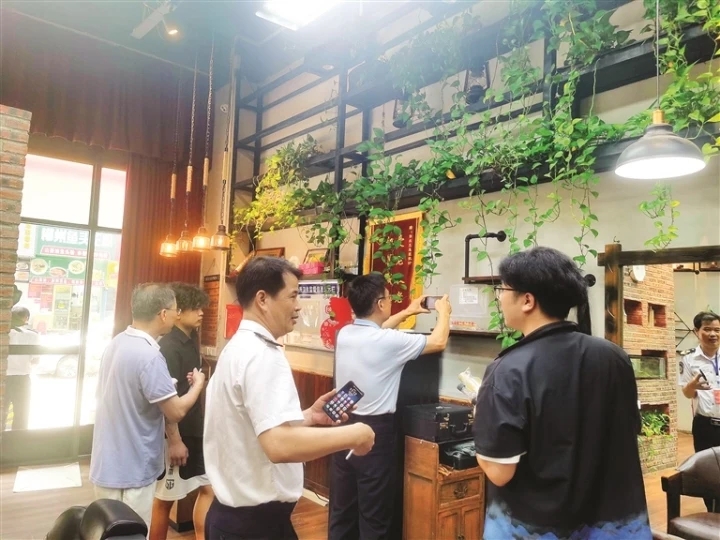 評估組到店鋪開展督導排查。惠州日報記者鄔玉婷 通訊員楊華坤 攝