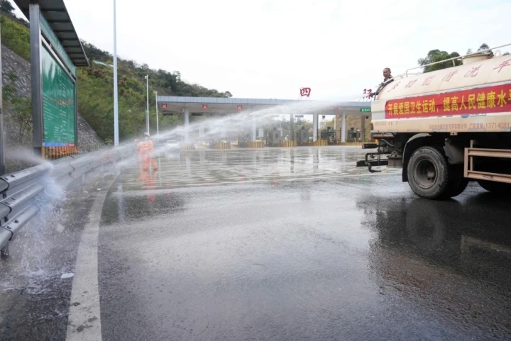 2月5日,在白云前收費站,惠州市交通運輸局仲愷區分局,區環衛部門組織人員對高速公路收費站出入口護欄、圍欄進行集中清洗。
