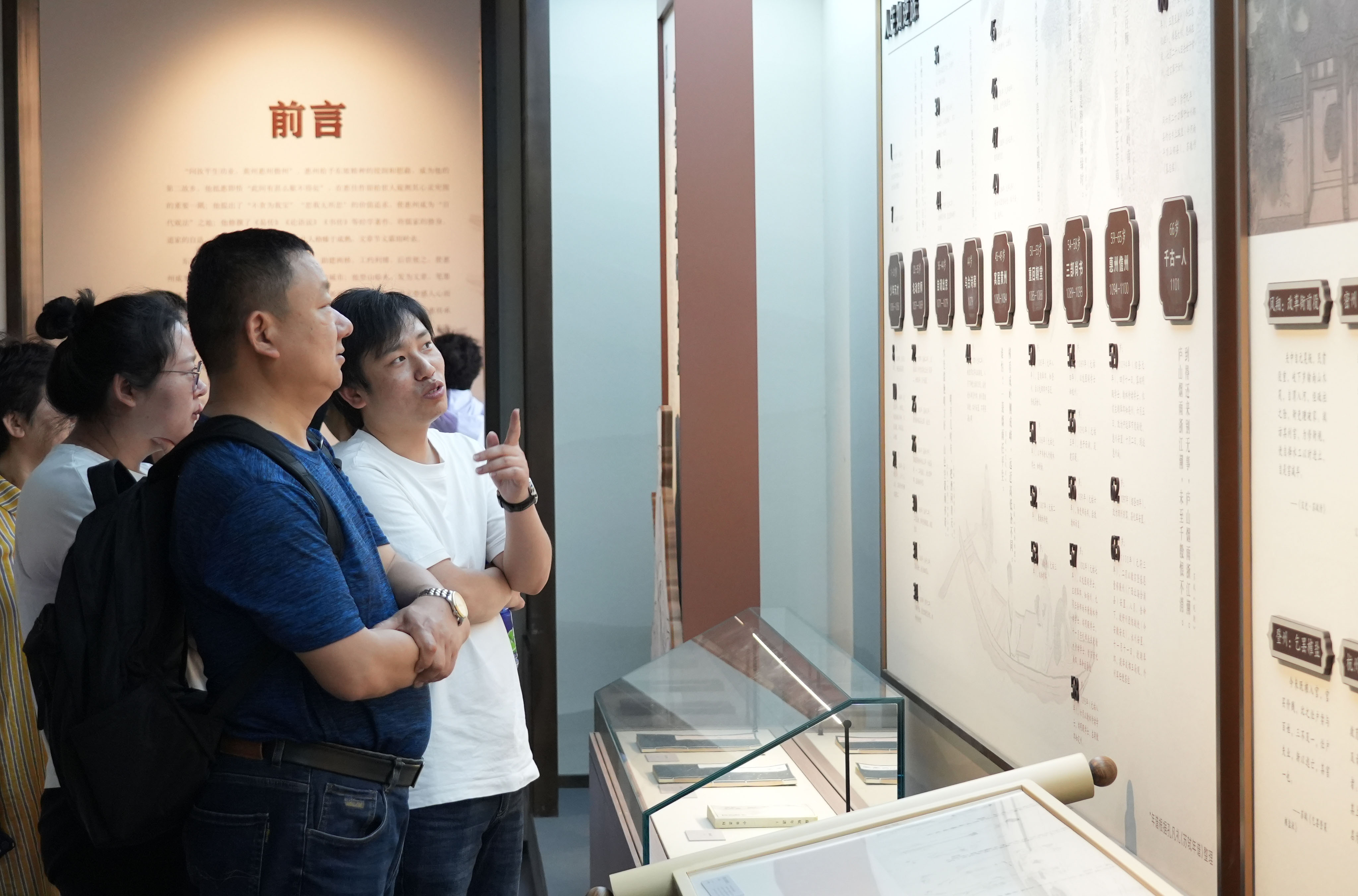 二展廳位于原館一館,這棟仿古建筑明亮通暢,外形古雅雄麗,莊重大方。該展廳以“不妨詩酒樂年華”為主題,通過書、畫、詩、琴、酒、茶,展示東坡緣何“不辭長作嶺南人”。走進這個展廳,可以全面了解蘇東坡寓惠的生活細節,游客可以在東坡啖荔雕塑前與東坡“對飲”合影、打卡拍照,可以在東坡家宴展區,“品味”美食家蘇東坡的飲食之道,更可以一覽蘇東坡在惠州如何寫詩作畫、快意江湖。正如展廳資料介紹,惠州的歲月給了東坡生活上更多的閑暇,他因緣自適,把“寓居”過成了“仙居”,既有書畫詩酒茶,亦不失人間煙火氣,從詩情畫意里感受萬物樂趣,在三餐茶飯里品出絕妙風味。