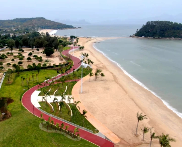 “家門口的醫(yī)院”即將完工,“家門口的公園”也在加緊建設(shè)中。大亞灣城投集團(tuán)參與大亞灣區(qū)政府投資項(xiàng)目全過程咨詢服務(wù)的第一宗工程——獅子山公園預(yù)計(jì)年底完成工程60%,明年6月竣工,公園毗鄰金灣社區(qū)、惠灣社區(qū)等多個(gè)大型社區(qū),建成后將惠及群眾逾萬人。另一邊,市民們翹首以盼的黃金海岸二期基礎(chǔ)設(shè)施工程也已竣工,長約900米的沿線沙灘上,利用地勢高差新增了兩處覆土服務(wù)建筑,觀光道上增設(shè)了形象出入口及觀景平臺(tái),鋪設(shè)了明亮的地磚,大葉榕、狐尾椰、海南椰……各類樹種點(diǎn)綴其中,不久后,市民們便能愜意地行走在觀光道,盡情飽覽沿途風(fēng)光。