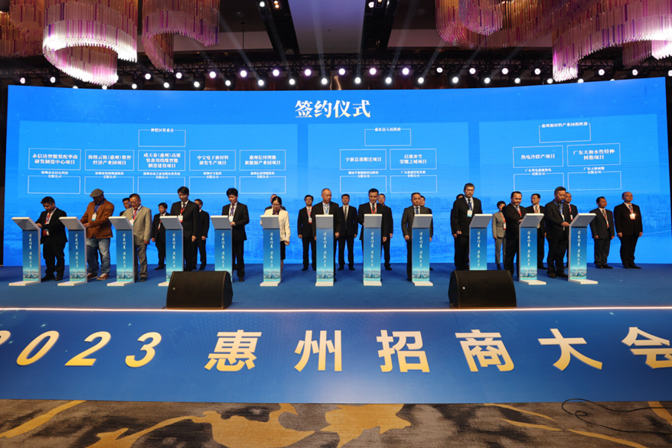 劉吉在致辭中代表市委、市政府對參加大會的領導嘉賓表示熱情歡迎。他說,省委、省政府對惠州發展寄予厚望,希望惠州打造廣東高質量發展新增長極,成為廣東第五個萬億級城市。這是新時代惠州的光榮使命,也是廣大企業在惠州投資發展的難得歷史機遇。這些年,惠州經濟承壓前行、穩中向好,展現了良好的發展韌性和潛能。惠州逆勢突圍態勢的形成,主要得益于堅定貫徹習近平經濟思想,落實新發展理念,緊扣高質量發展首要任務,持之以恒發展實體經濟,聚焦石化能源新材料、電子信息兩大萬億級產業集群,引進一批標志性項目,呈現出大項目搶灘進駐,國企、民企、外企同臺競技,以大帶小的生動局面,走上了一條以制造業為核心的實體經濟發展之路。當前,惠州正深入學習貫徹黨的二十大精神,按照省委、省政府的部署要求,牢牢把握高質量發展首要任務和總抓手,大力構造集聚產業資源的“強磁場”,“3+7”工業園區積厚成勢,不斷做強縣域經濟發展引擎。舉辦這次招商大會,就是要釋放大抓經濟、拼經濟、拼發展的強烈信號,希望各位企業家更加深入了解惠州,與惠州攜手合作,共同書寫新時代高質量發展的傳奇、創造令人刮目相看的成就。