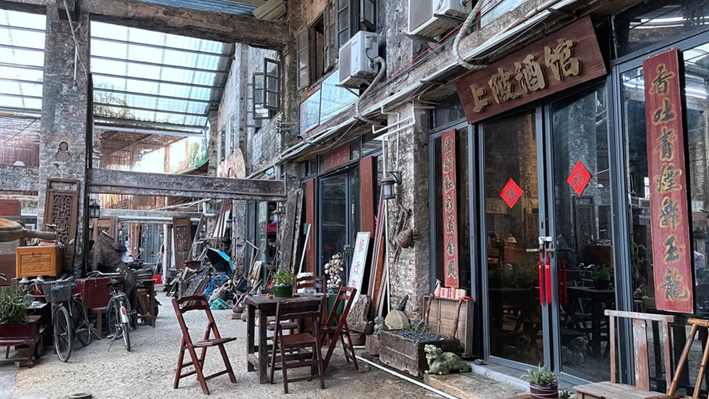 “潛珍閣”利用老船廠遺留的柱、梁、建筑基礎打造成新的公共空間,輪機車間成為了品茗交流之處,鑄造車間變成了工藝品展覽室——鍋碗瓢盆、桌椅板凳床、琴棋書畫、炊具農具,各式小家電,還有花轎、食格、盒籮等惠州民間舊式婚嫁習俗物品等,各種各樣的老物件,看似雜亂堆疊實則頗有心思組合,令人目不暇接。市民游客穿行其中,每個人都能在這里找到有關童年、成長的打開方式。這里經常有收藏“發燒友”來交流,也吸引了不少文化人士來參觀。