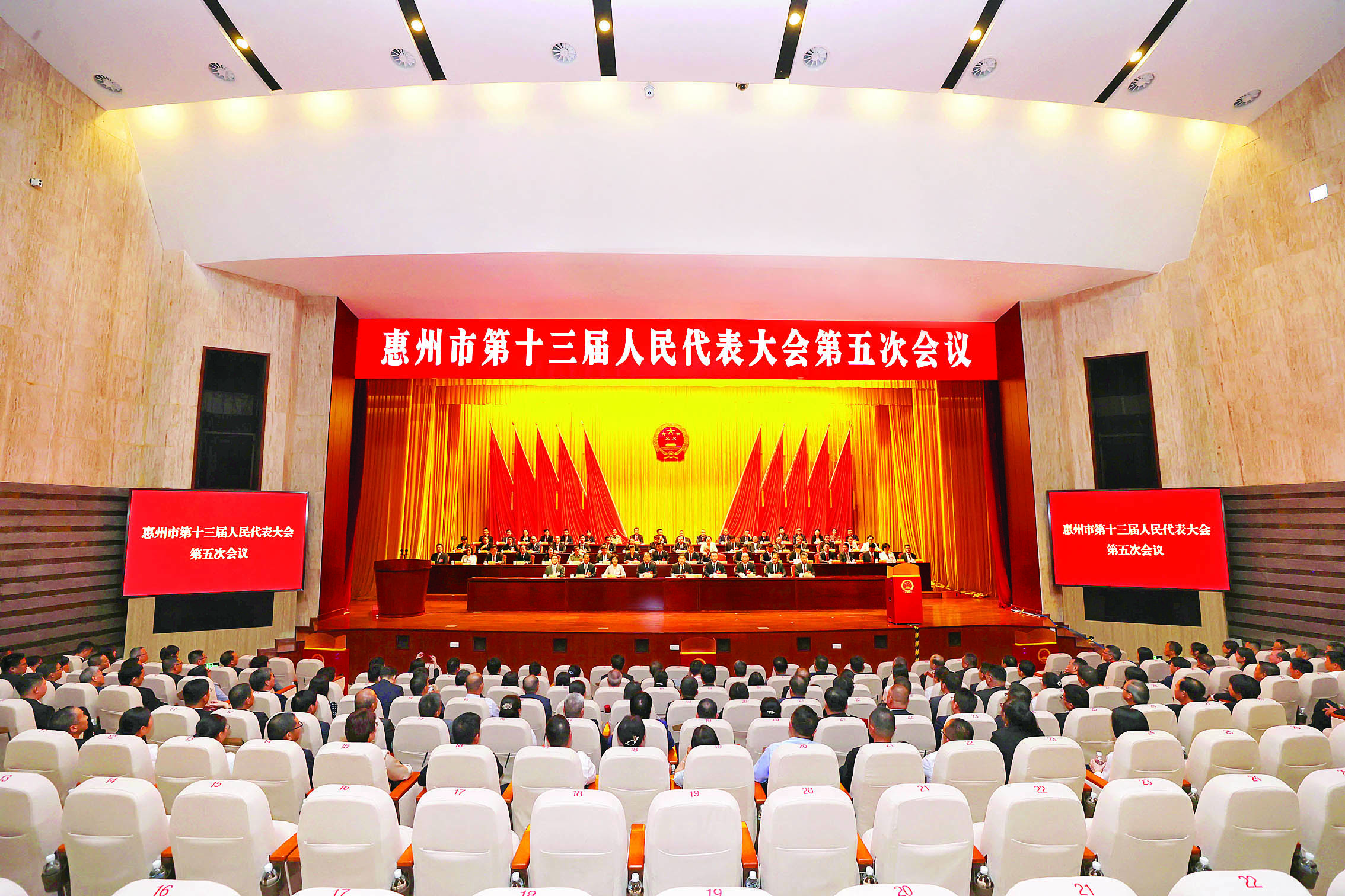 在莊嚴的國歌聲中,市十三屆人大五次會議第一次全體會議舉行,出席會議的市十三屆人大代表共294名,符合法定人數。會議表決通過《惠州市第十三屆人民代表大會第五次會議選舉辦法》。
