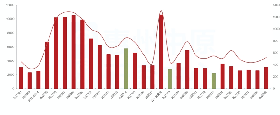 2023年上半年惠州市重點(diǎn)項(xiàng)目每周來訪認(rèn)購走勢圖。