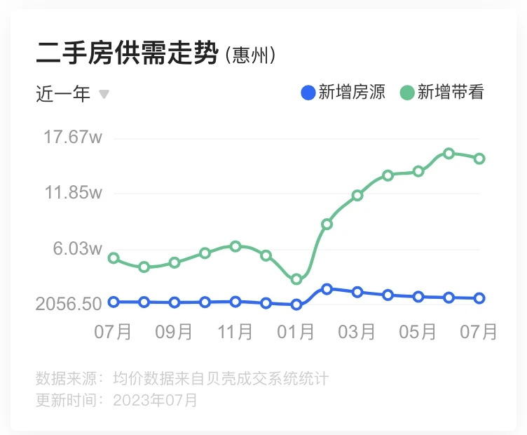 惠州新增掛牌二手房源走勢(數(shù)據(jù)來源:貝殼指數(shù))