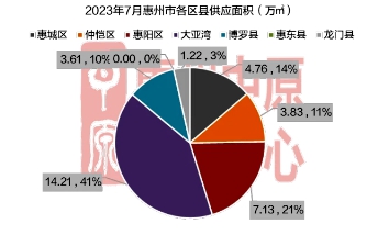 供應方面,據惠州中原戰略研究中心監測,7月全市新房住宅供應新增3147套,供應面積為34.76萬㎡,環比下降42.65%,供應繼續縮量。