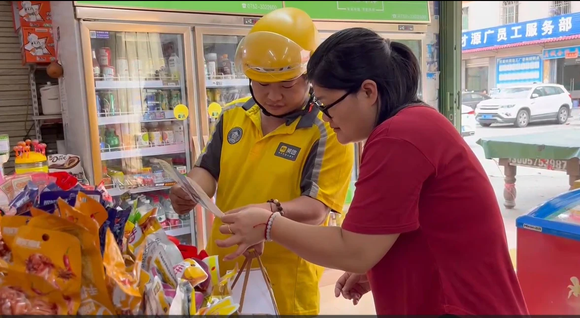 外賣小哥宣傳反詐。 惠州日報記者林麗娟 通訊員李慧玲 攝