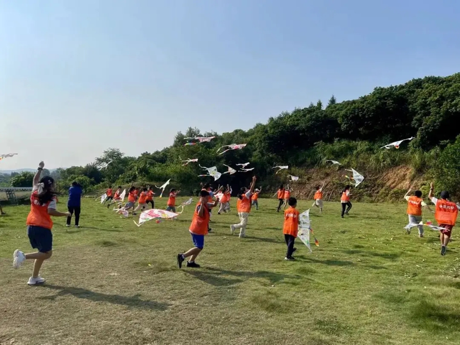 孩子們在東道羽茶里王國放風箏。