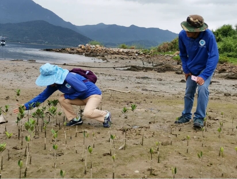 大亞灣志愿者在悉心呵護紅樹苗成長。