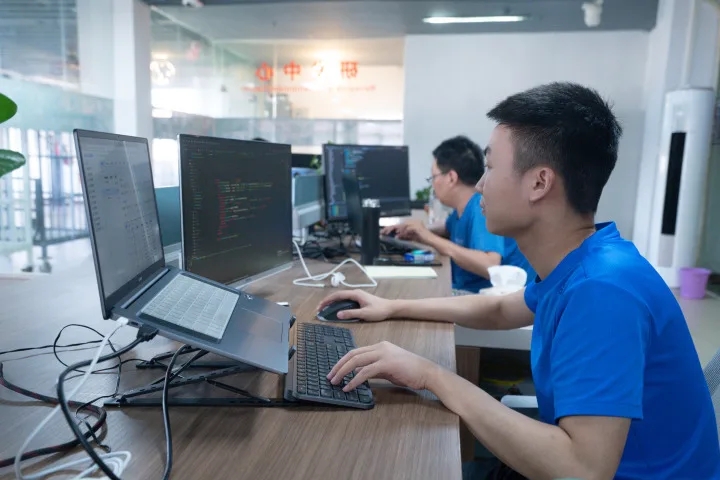 走進(jìn)立冠科技,程序員忙著寫各種代碼,給系統(tǒng)升級迭代,硬件設(shè)計(jì)師正在設(shè)計(jì)最新的智能吊掛系統(tǒng)零部件圖紙,研發(fā)部門正在調(diào)試最新的產(chǎn)線平板顯示器設(shè)備,一派繁忙景象,整個(gè)公司一半以上都是研發(fā)技術(shù)工程師。