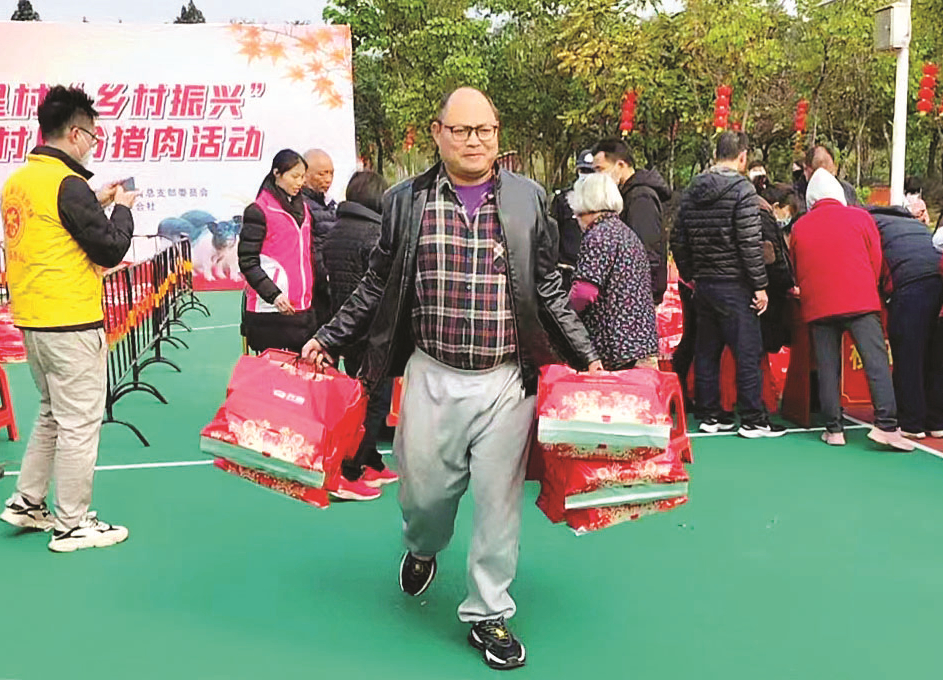 金星村分豬肉活動(dòng)現(xiàn)場(chǎng),人頭攢動(dòng),熱鬧非凡。