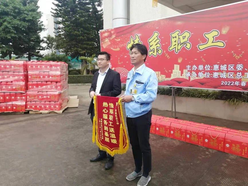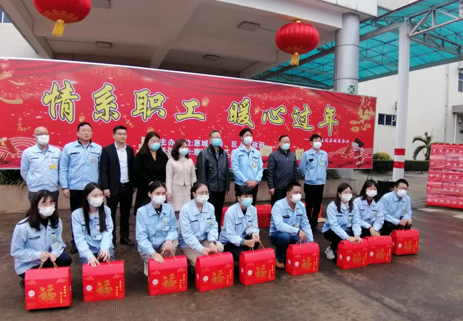 惠州日報訊 (記者彭紅霞 通訊員馮雪輝)1月24日上午,雖然天氣有點陰冷,但位于惠城區金龍大道邊的惠州住潤電裝有限公司廠區內卻暖意融融。在惠城區委區政府統籌指導下,由惠城區總工會開展的“情系職工 暖心過年”新春送溫暖進企業活動走進該公司,將3000份紅彤彤的大禮包和新春祝福送給公司留惠過年的員工,表達黨和政府及工會組織對職工群眾的關懷。