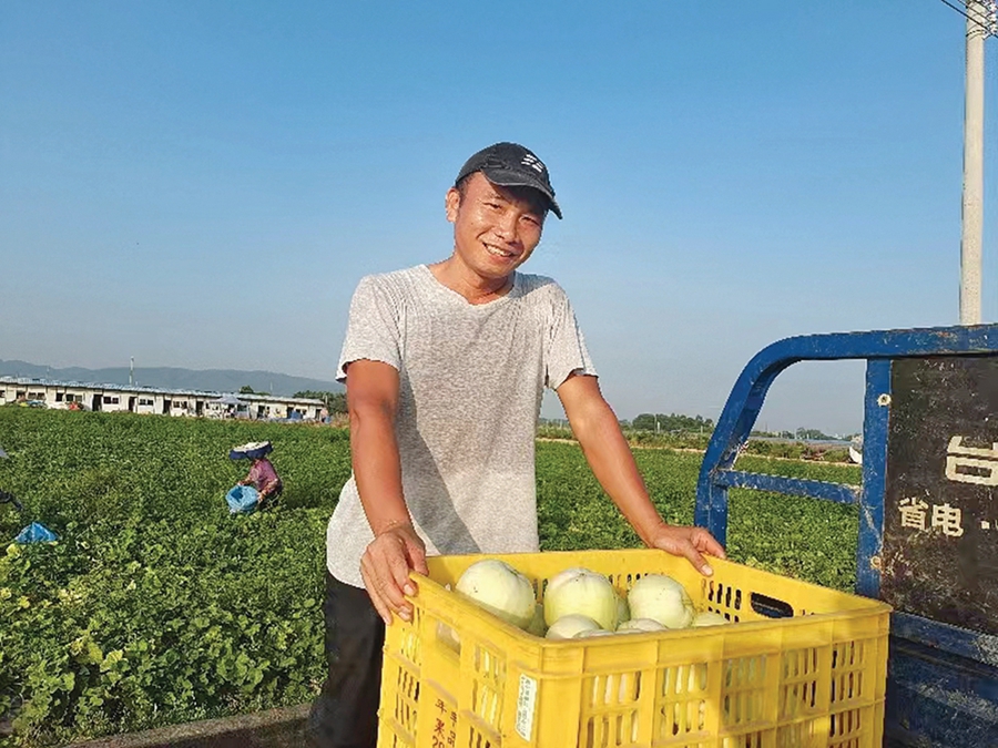 “你們隨便逛逛,先和村民們聊聊,上午時間緊,今天一個搞搬運的阿叔家里有事沒來,我先去忙一會兒。”匆匆和記者搭了個話,李院樂騎著三輪車在田間忙碌著將村民采收的一筐筐白香瓜轉運到集中清洗點。