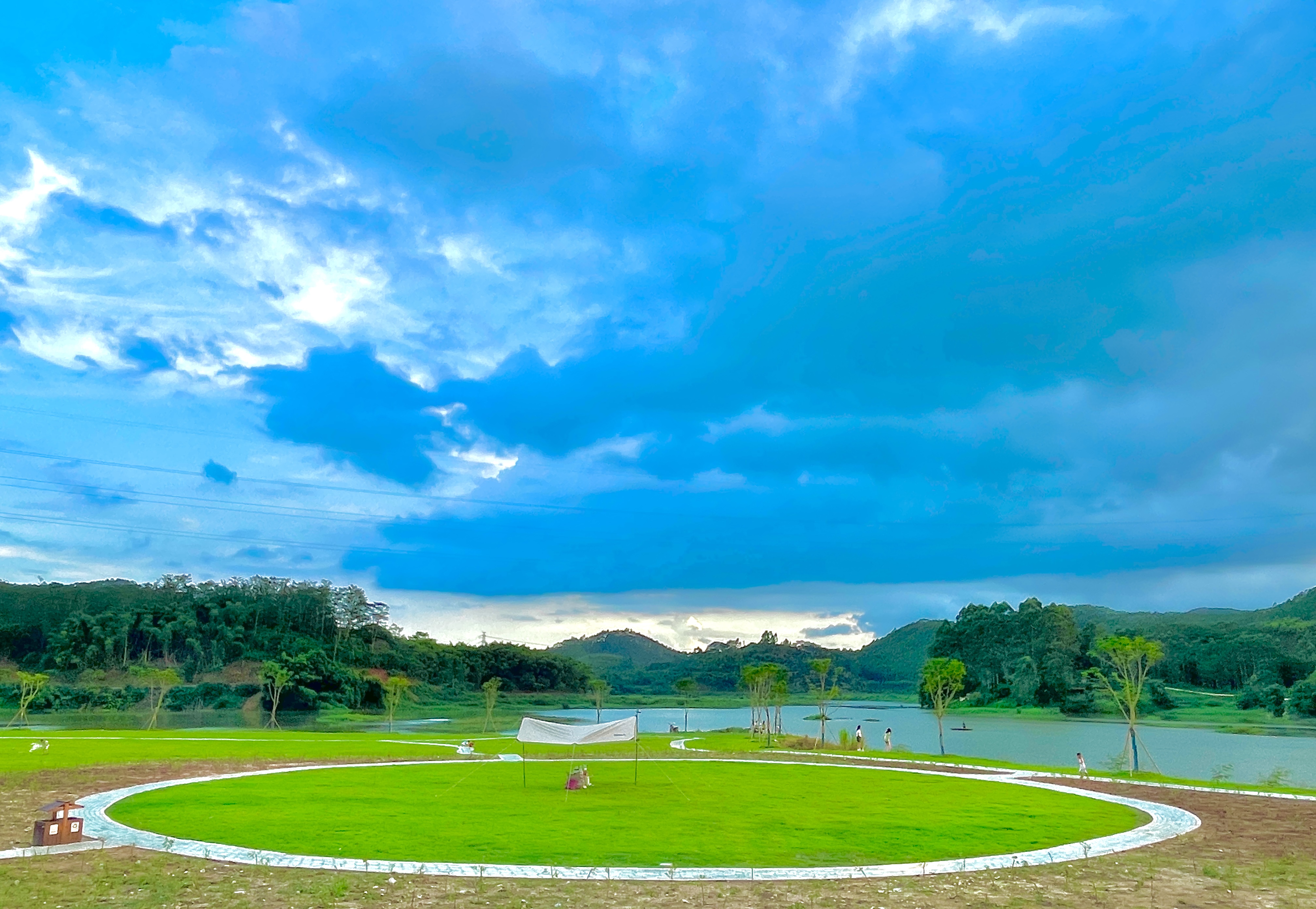 站在綠油油的草地上,放眼望去,碧波微瀾,顯崗水庫的旖旎風(fēng)光一覽無余,讓人心曠神怡。這里便是老圩村的濱水公園,腳下是綠意蔥蘢的草地,前方是水天一色的自然美景,這里逐漸新晉成為橫河網(wǎng)紅打卡點(diǎn)。村民張伯說:“傍晚來這里吹吹晚風(fēng),特別舒服。”
