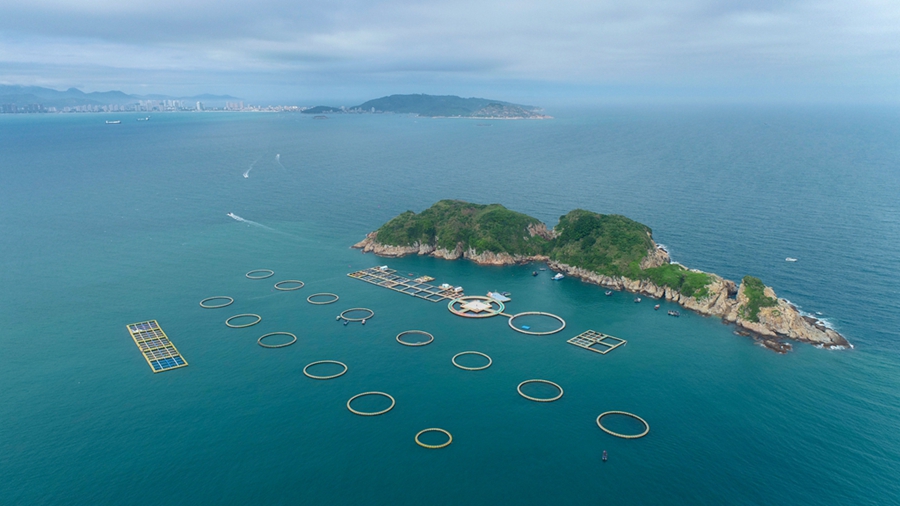 位于惠東港口的粵港澳流動漁民深海網箱養殖產業園。惠州日報記者楊建業 黃鑫威攝