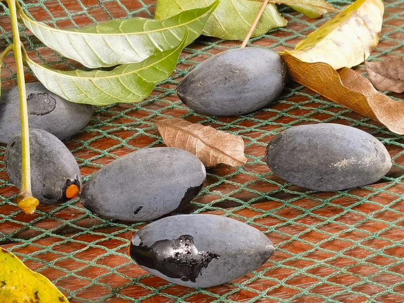 “打?yàn)鯔焓求w力活,也是技術(shù)活,既考體力,也考眼力。”高橋村村民阿明生于1989年。這些年,他已經(jīng)從父親那里接過了衣缽,家里的烏欖基本都由他采收。他說,烏欖烏黑烏黑的,藏在樹葉下,特別光線不好時(shí),就更難發(fā)現(xiàn)了。連日來,每天清晨,他吃過早餐就和父親一起去打?yàn)鯔欤?xì)網(wǎng)、竹竿、梯子是打?yàn)鯔斓谋貍涔ぞ摺Kf,年景好時(shí),一棵古欖樹可采烏欖近千斤,今年烏欖的結(jié)果情況并不理想,“烏欖有的鮮銷,但更多的是腌制后再銷售。腌制后的烏欖是一種美味,是很好的下飯菜。”