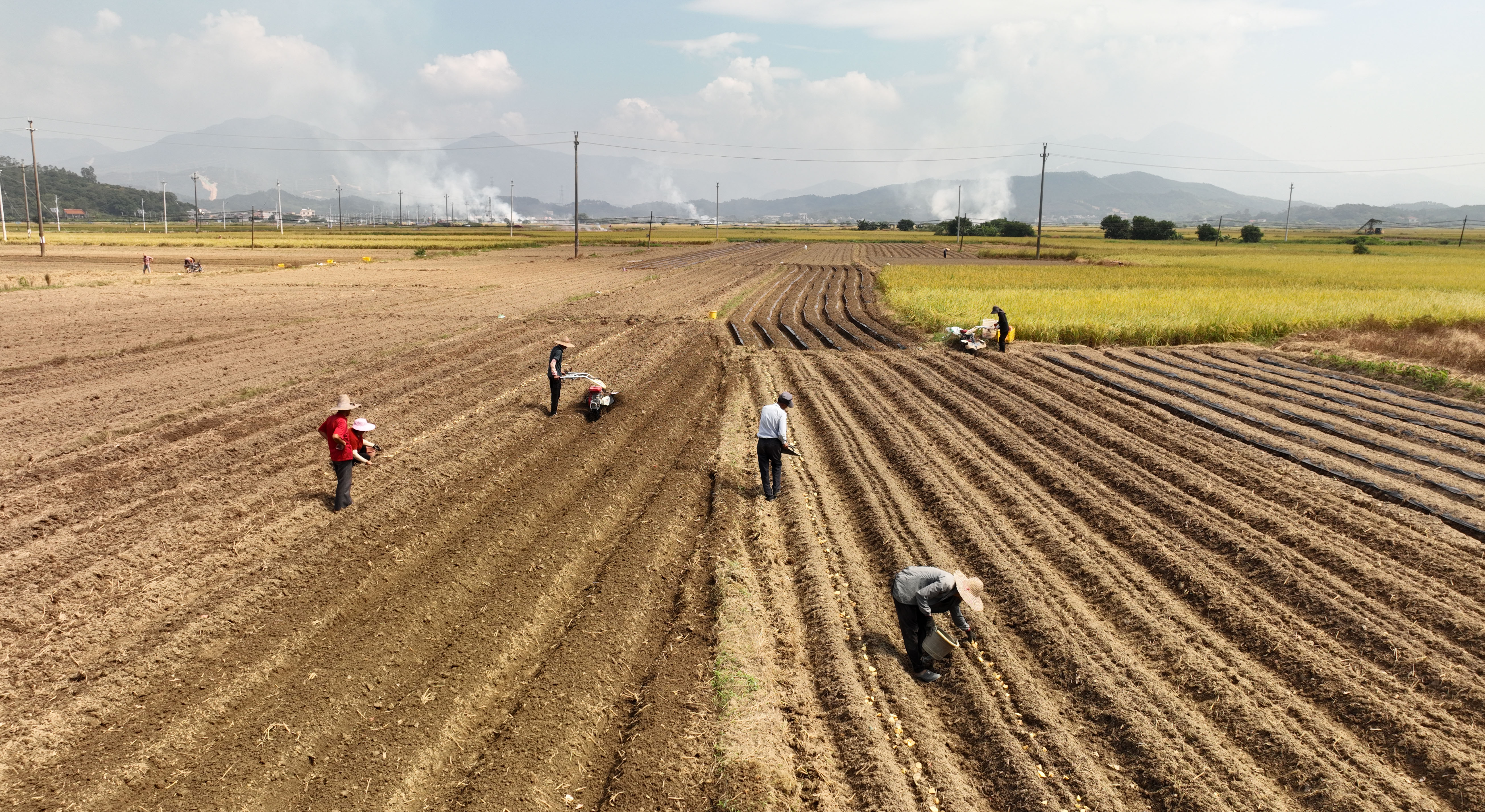 10月24日,惠東縣稔山鎮老坑村、竹園村一帶,剛收完晚稻的農民,搶抓當前晴好天氣播種馬鈴薯,確保不誤農時,提高田地使用率,田間地頭一片忙碌。