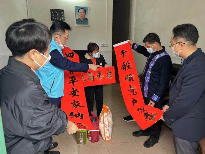 除了現場寫春聯,活動還送福上門。在市文聯黨組書記、主席徐海東帶領下,文藝志愿者們將大米、花生油等慰問品和新寫的春聯送到了橫河當地幾位老黨員、困難黨員家中,給他們送上誠摯的新春慰問。活動中,文藝志愿者們跟他們一起話家常、噓寒問暖,詳細詢問日常生產生活情況和春節安排,向他們表達祝福與期望,希望他們日子越過越紅火。
