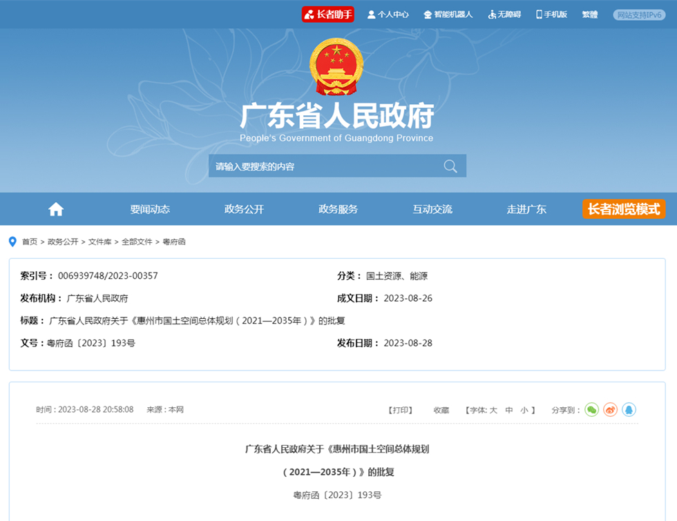惠州市國土空間總體規(guī)劃獲省政府批復