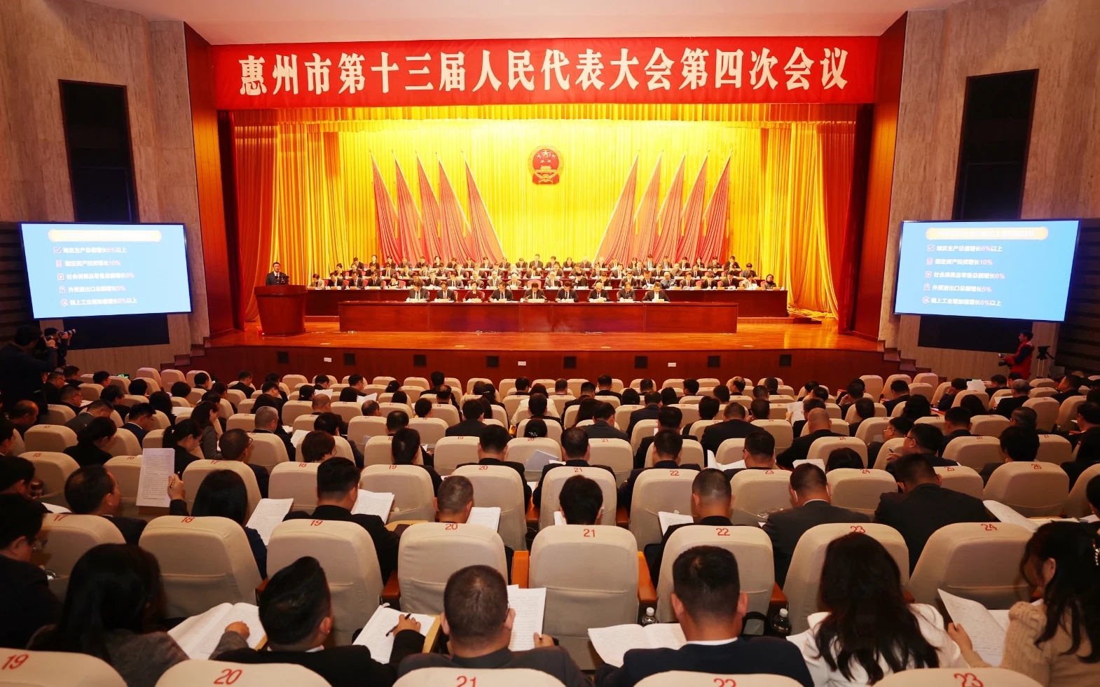 1月17日上午9時,在雄壯的國歌聲中,惠州市第十三屆人民代表大會第四次會議在市會議中心開幕。