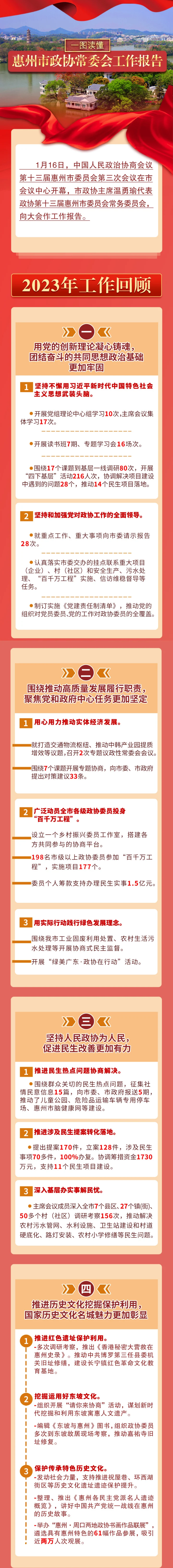 1月16日上午,中國人民政治協商會議第十三屆惠州市委員會第三次會議在市會議中心開幕。市政協主席溫勇瑜代表政協第十三屆惠州市委員會常務委員會向大會作工作報告。本次報告都有哪些亮點?現在帶你一圖讀懂!