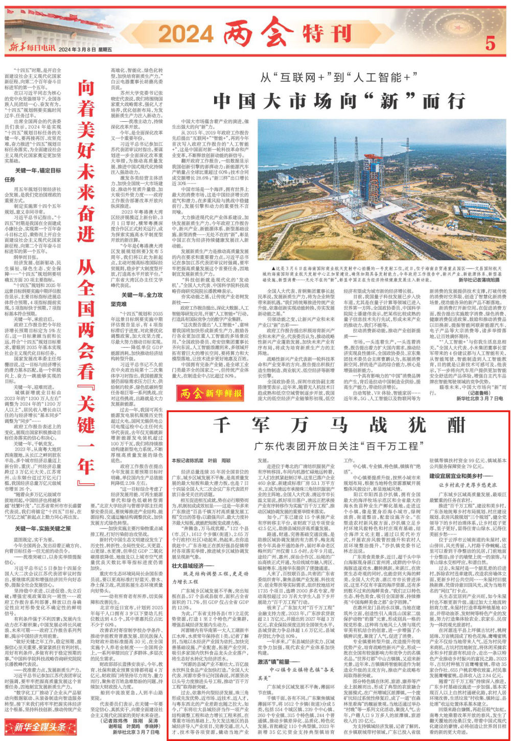 “河源的縣域產(chǎn)業(yè)不斷壯大,百億級水飲料及食品產(chǎn)業(yè)加快打造。”全國人大代表、河源市委書記何國森說,河源堅決以頭號力度推進(jìn)頭號工程,推動“百千萬工程”取得新突破。