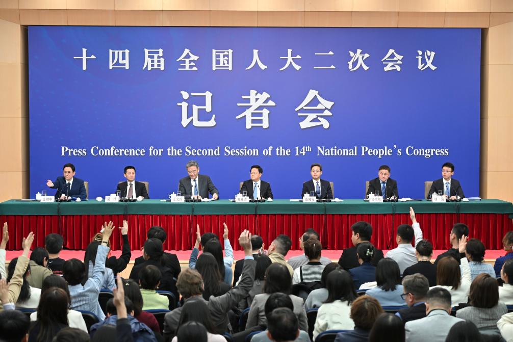 3月6日,十四屆全國(guó)人大二次會(huì)議在北京梅地亞中心新聞發(fā)布廳舉行記者會(huì)。國(guó)家發(fā)展和改革委員會(huì)主任鄭柵潔、財(cái)政部部長(zhǎng)藍(lán)佛安、商務(wù)部部長(zhǎng)王文濤、中國(guó)人民銀行行長(zhǎng)潘功勝、中國(guó)證券監(jiān)督管理委員會(huì)主席吳清就發(fā)展改革、財(cái)政預(yù)算、商務(wù)、金融證券等相關(guān)問(wèn)題回答中外記者提問(wèn)。