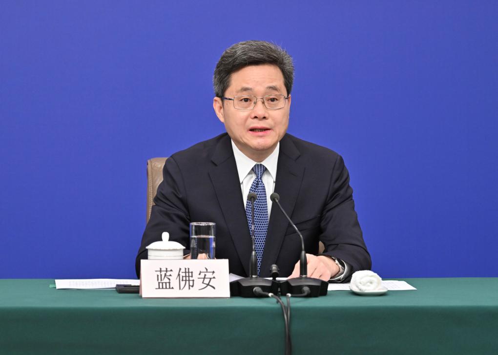 3月6日,十四屆全國(guó)人大二次會(huì)議在北京梅地亞中心新聞發(fā)布廳舉行記者會(huì)。國(guó)家發(fā)展和改革委員會(huì)主任鄭柵潔、財(cái)政部部長(zhǎng)藍(lán)佛安、商務(wù)部部長(zhǎng)王文濤、中國(guó)人民銀行行長(zhǎng)潘功勝、中國(guó)證券監(jiān)督管理委員會(huì)主席吳清就發(fā)展改革、財(cái)政預(yù)算、商務(wù)、金融證券等相關(guān)問(wèn)題回答中外記者提問(wèn)。這是藍(lán)佛安在回答記者提問(wèn)。